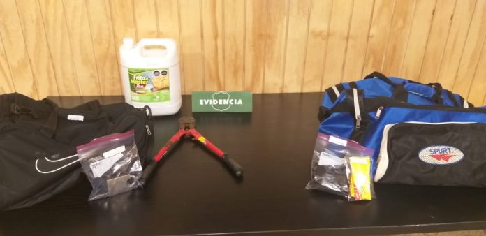 Los antisociales, identificados como F.P.M. (29) y B.P.H. (21), fueron aprehendidos en la intersección de las calles Camilo Henríquez y Chacabuco, y en las inmediaciones del lugar de su captura fue encontrado un bolso con el candado del local comercial cortado y un napoleón.
