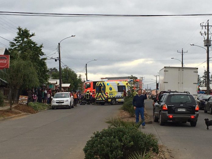 Al accidente ocurrido en la intersección de las calles René Varas y Hugo Meyer concurrieron Bomberos de la Primera Compañía de la ciudad, una ambulancia de avanzada del Samu y personal de Carabineros.