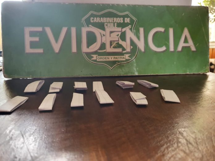 Tras la revisión del automóvil Chevrolet Sail y luego de advertir la condición del conductor, los funcionarios policiales realizaron el hallazgo de 12 envoltorios de cocaína, los cuales fueron encontrados dentro de un habitáculo ubicado bajo el volante del vehículo.