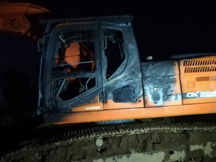 Además, personal policial encontró cerca de 26 miguelitos en la Ruta T-354, a la altura del cierre perimetral del predio donde se produjo el incendio que destruyó la maquinaria y los vehículos.