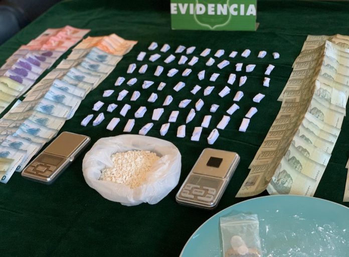 Tras el registro a un domicilio de ese sector, el personal de la Unidad Especializada encontró 69 dosis de pasta base de cocaína (37g), una bolsa con las misma sustancia a granel (33g), 298 mil pesos en dinero en efectivo y 2 pesas digitales.