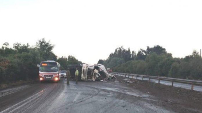 El accidente se produjo la madrugada del día hoy, en el sector de Rucaco en la Comuna de San José de la Mariquina, cuando por causas que se investigan el camión de carga de combustible volcó impactando con el bandejón central.