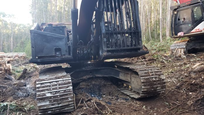 El predio ubicado en el kilómetro 10 de la ruta T-145, en la comuna de Panguipulli, donde se realizan faenas forestales de la empresa Nahuelbuta, fue atacada en horas de la noche por desconocidos, quienes quemaron una reclasificadora y dañaron una excavadora con impactos balísticos.