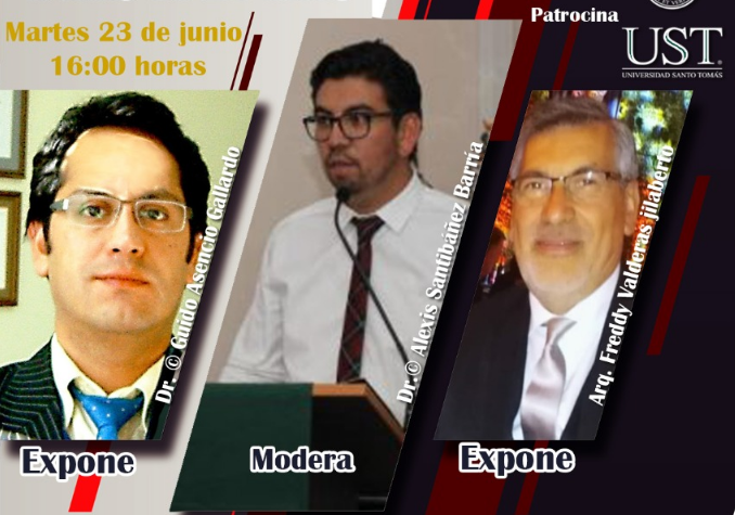 Esta actividad será patrocinada por la Universidad Santo Tomás y el moderador será el Dr. Alexis Santibañez. Los expositores serán: Guido Asencio Gallardo, académico, consultor e investigador en instituciones de Chile y Latinoamérica, y Freddy Valderas, arquitecto y consultor en planificación territorial y patrimonio.