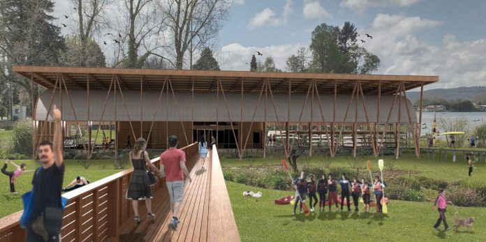 En dicho proyecto de infraestructura deportiva se contempló un Centro Náutico, que comenzó a construirse el pasado lunes 15 de junio y tendrá un plazo de ejecución de nueve meses, para inaugurarse en marzo de 2021, con una inversión institucional de 1613 millones de pesos. En 783,2 metros cuadrados, esta obra construye la imagen náutica desde la lejanía, la que se materializa suspendiendo en el paisaje una nave de 50 metros de largo, visible y presente desde distintos puntos estratégicos de la ciudad: la costanera, el puente Pedro de Valdivia y el río.