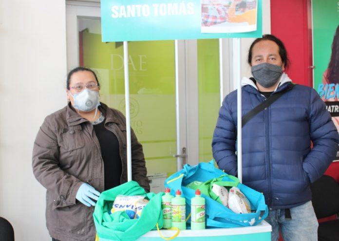 Los estudiantes de la carrera de Servicio Social del Instituto Profesional Santo Tomás Valdivia llevaron a cabo la campaña “Servicio Social contigo codo a codo”, la cual tiene como objetivo ayudar a los afectados por la pandemia con: Agua, alimentos no perecibles y útiles de aseo personal y de limpieza.