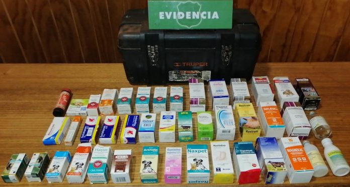 En el interior del vehículo en el que se trasladaban, Carabineros encontró un maletín color negro, con medicamentos veterinarios e instrumentos médicos, sustraídos el martes recién pasado desde una camioneta estacionada en calle Santiago Bueras con General Lagos.