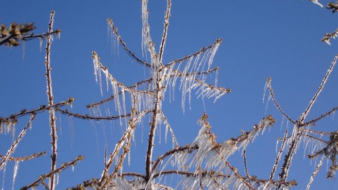 El investigador detalló que el control de heladas mayormente usado en la zona sur es el sistema de control por aspersión sobre la altura de los árboles basado en el “cambio de estado” de la materia.
