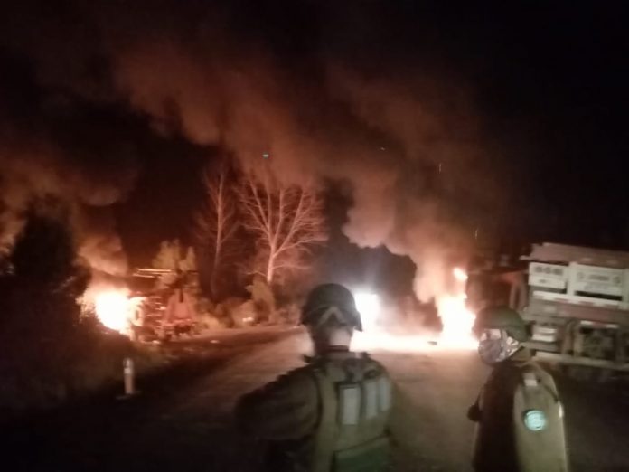 Se trata de un incendio intencional que afectó a maquinaria forestal y a dos camiones, cuyos conductores fueron intimidados con armas de fuego y conminados a bajar de las máquinas por un grupo aún indeterminado de sujetos.