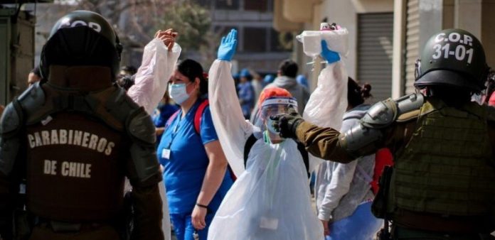 El 5 de septiembre, los TENS caminaron pacíficamente por la Plaza de la Dignidad, esa primera línea más dura de la salud, a los que hace poco el propio Presidente de la República les pedía aplausos por cadena nacional, fueron maltratados y reprimidos. Sí, esos mismos fueron golpeados por carabineros, detenidos y dispersados con carro lanza agua. ¿El delito?, caminar con pancartas, respetar la distancia social y usar mascarillas.