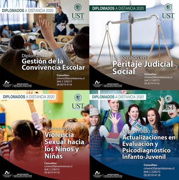 En total son 9 diplomados que la sede Santo Tomás Osorno está ofreciendo en modalidad a distancia. Estos son, Diplomado en Conservación Biológica, Peritaje Judicial Social, Gestión de la Convivencia Escolar, Intervención en Violencia Sexual hacia Niños y Niñas, Lengua de Señas Chilena para una Comunicación Inclusiva, Actualizaciones en Evaluación y Psicodiagnóstico Infanto-Juvenil, Coaching como Herramienta de Procesos de Cambio, Consultoría e Intervención Organizacional y Salud Familiar Comunitaria en Atención Primaria.