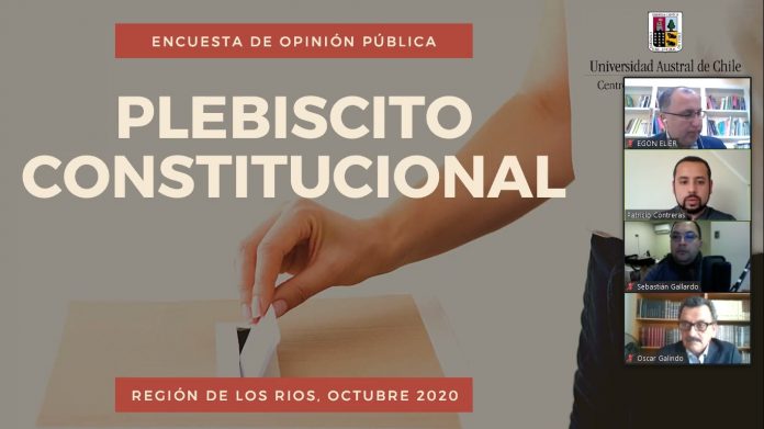 Interesantes resultados arrojó la Encuesta de Opinión Pública sobre el Plebiscito Constitucional desarrollada por el Laboratorio de Opinión Pública del Centro de Estudios Regionales de la Universidad Austral de Chile. A diferencia de los estudios efectuados en diciembre de 2019 y marzo de 2020, en esta oportunidad se trata de una encuesta virtual tipo panel desarrollada con apoyo de una empresa especializada que cuenta con una base de datos online en la región de Los Ríos. Los resultados fueron dados a conocer a los medios de la región el miércoles 07 de octubre vía Zoom.