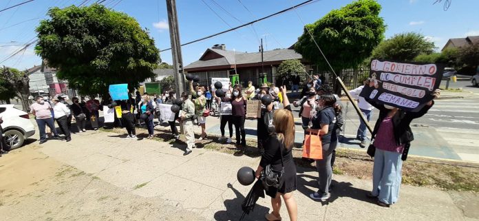 Tras un recorrido por el área céntrica de la comuna, el grupo de manifestantes se trasladó hasta el frontis del edificio que alberga a la Autoridad Sanitaria en calle Arturo Prat, donde con diversas consignas y globos negros piden al Gobierno que cumpla sus compromisos y saque a la comuna del confinamiento total.