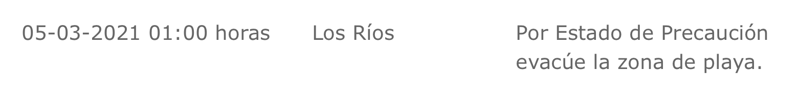 Con lo anterior, se procede a cancelar la Alerta Amarilla para las comunas del borde costero nacional, incluyendo territorio insular y territorio chileno antártico, por amenaza de tsunami, que se encontraba vigente desde hoy 04 de marzo de 2021.