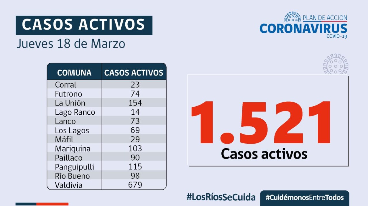 Según el informe oficial, se registran 156 nuevos casos en la comuna de Valdivia, 26 casos en la comuna de Mariquina, 25 casos en la comuna de Paillaco, 17 casos en la comuna de La Unión, 15 casos en la comuna de Lanco, 13 casos en la comuna de Río Bueno, 10 casos en la comuna de Futrono, 9 casos en la comuna de Corral, 9 caso en la comuna de Los Lagos, 7 casos en la comuna de Máfil y 2 casos en la comuna de Lago Ranco.