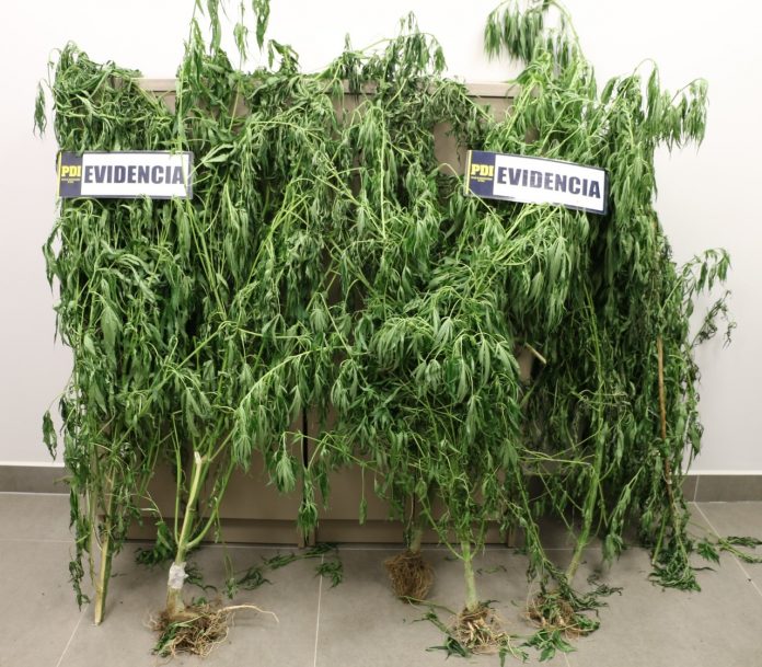 Fue así como los detectives de la Brigada Antinarcóticos y Contra el Crimen Organizado de Valdivia incautaron seis plantas de Cannabis Sativa cuyos tamaños fluctúan entre 130 a 180 centímetros de alto.