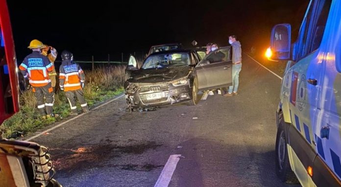 Dos personas resultaron lesionadas al colisionar un vehículo menor con un animal vacuno que deambulaba por la vía la tarde del domingo, en el sector de Quilquilco, en la ruta T-921 que une Crucero con Trafún, en la comuna de Río Bueno.