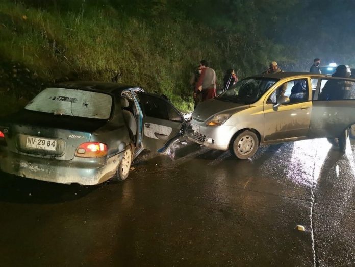 Tres personas resultaron lesionadas en una colisión vehicular frontal ocurrida a eso de las 18:30 horas de este lunes, en el puente Contra, en la salida sur de Río Bueno, entre dos vehículos menores, debido a una falla mecánica.