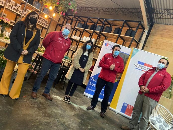 En el taller de Nicole Dufey, empresaria dedicada a la organización de eventos y venta de arreglos florales en Valdivia, autoridades regionales se reunieron para realizar el lanzamiento del Programa Capital Semilla Emprende de Fomento Los Ríos, ejecutado por Sercotec.