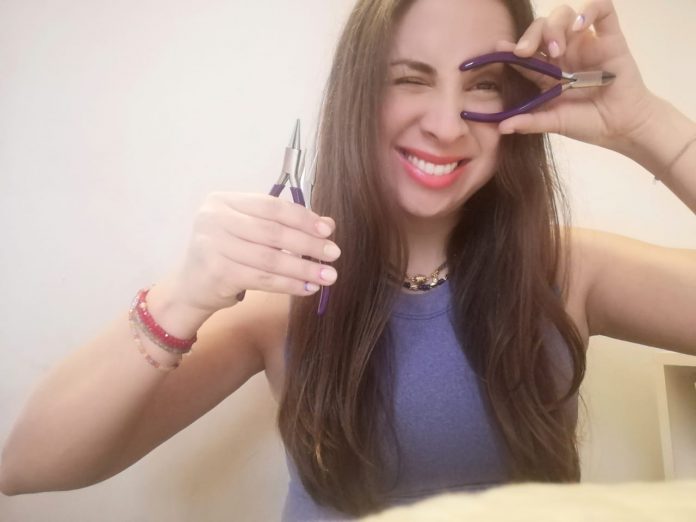 “Yo trabajo con joyas de hechas principalmente de piedras preciosas y semi preciosas, utilizando metales como cobre bañado en oro de 18 quilates, aleación de aluminio y zinc, bañado en oro de 24 quilates; alambres de plata, alambres bañados en plata, y cristales checos que también tienen algunas piezas”.
