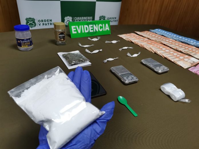 Tras el allanamiento en ambos domicilios, el personal especializado en droga incautó 147 gramos de clorhidrato de cocaína, 12 gramos 500 miligramos de marihuana elaborada, dos balanzas digitales y 1 millón 131 pesos en dinero en efectivo producto de las ventas. El Teniente Michael Llantel del 0S7 Valdivia, precisó que la cocaína y marihuana decomisada equivale a 426 y 36 dosis respectivamente, valoradas en 4 millones 700 mil pesos.
