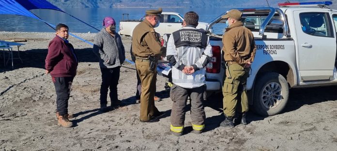 En el sector Río Blanco de la desembocadura del Lago Maihue trabajan Bomberos, Carabineros y personal especializado en búsqueda acuática.