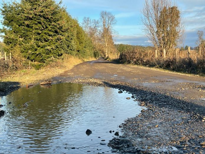 A solo tres kilómetros de Puerto Nuevo, en la ruta hacia Futrono, se encuentra la localidad de La Plata, donde habitan cerca de 50 familias, que cada día deben lidiar con las pésimas condiciones del camino vecinal.