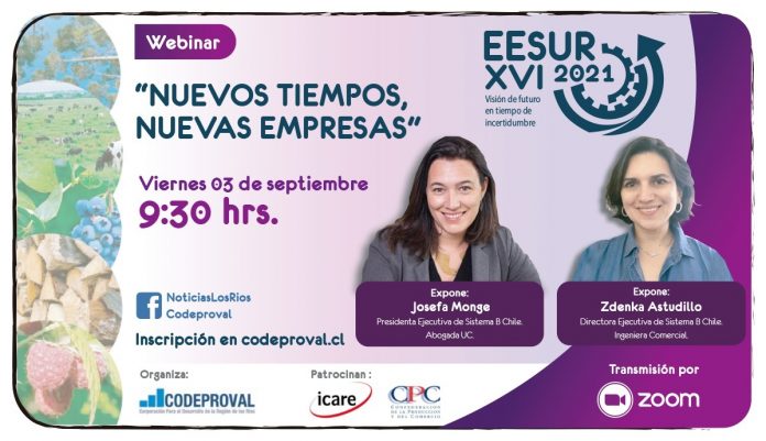 “Nuevos Tiempos, Nuevas Empresas” es el nombre del segundo webinar que se efectuará este viernes 3, en el marco del XVI Encuentro Empresarial del Sur, EESUR. Participarán como expositoras Josefa Monge y Zdenka Astudillo.