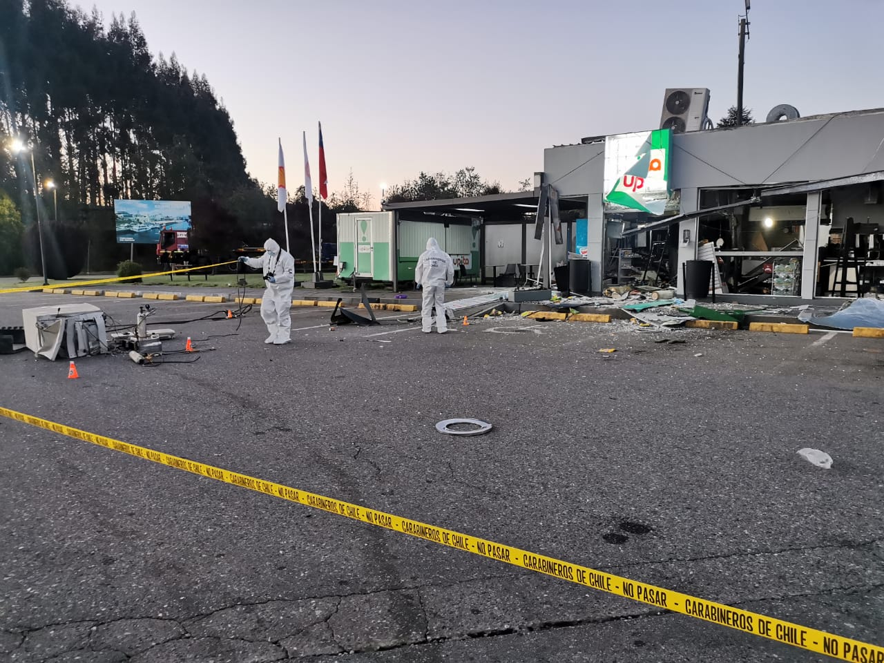 Durante la madrugada de este lunes, Carabineros de Los Lagos acudió hasta el servicentro Shell, ubicado en el Km 834 de la ruta 5 Sur, donde un grupo aproximado de 15 individuos ingresa al local comercial de la estación de servicio, y mediante el mètodo de saturación por gas hacen explotar el cajero automático , desde el cual extraen una cantidad indeterminada de dinero.