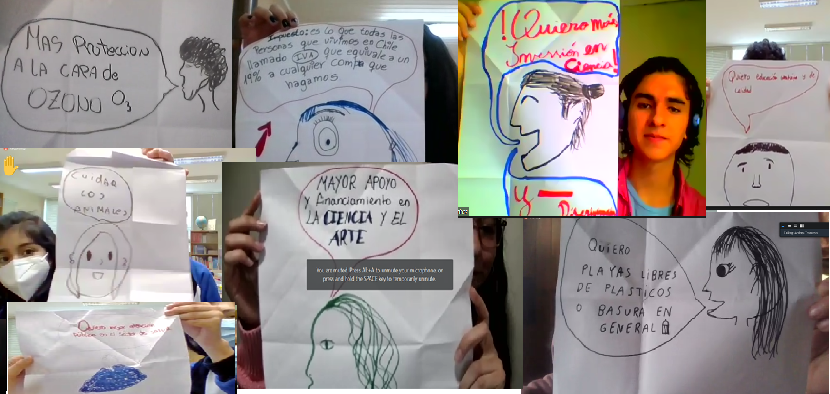 Durante la ceremonia de clausura se hizo presente Aurora Delgado, convencional constituyente por el Distrito 24 quien junto con saludar a los equipos recibió un documento con las ideas y reflexiones de los y las estudiantes. La actividad “¿Cómo imagino a mi país?” plasmó los pensamientos de los y las investigadores escolares en las áreas que son de interés de niños, niñas y adolescentes.