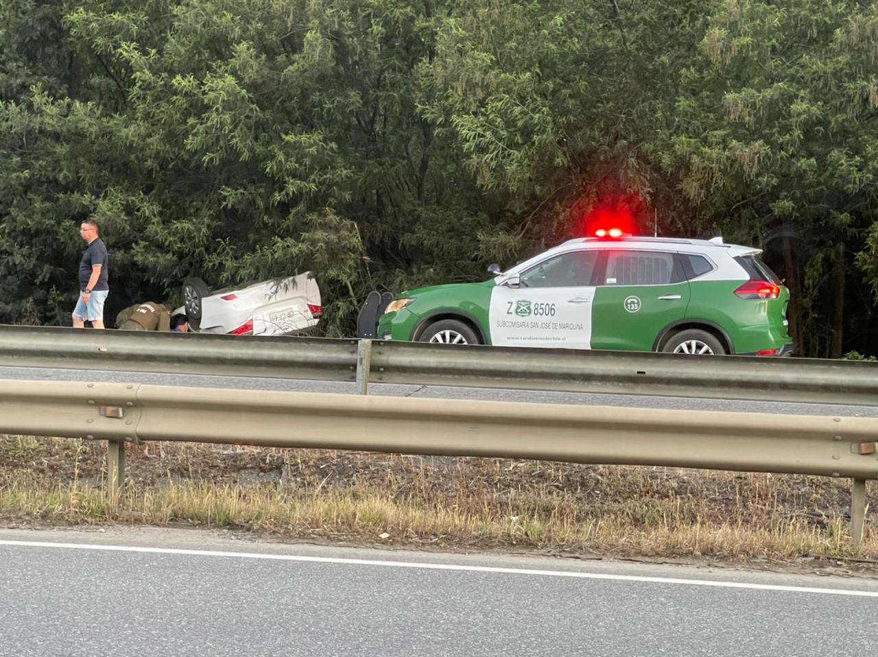 Esta tarde, cerca de las 21:00 horas un vehículo volcó a alta energía en la ruta 5 Sur en el KM 795,  entre el tramo Máfil – Estación Mariquina. En el lugar, un vehículo menor marca Toyota Yaris volcó a un costado de la pista que va de Sur a Norte.