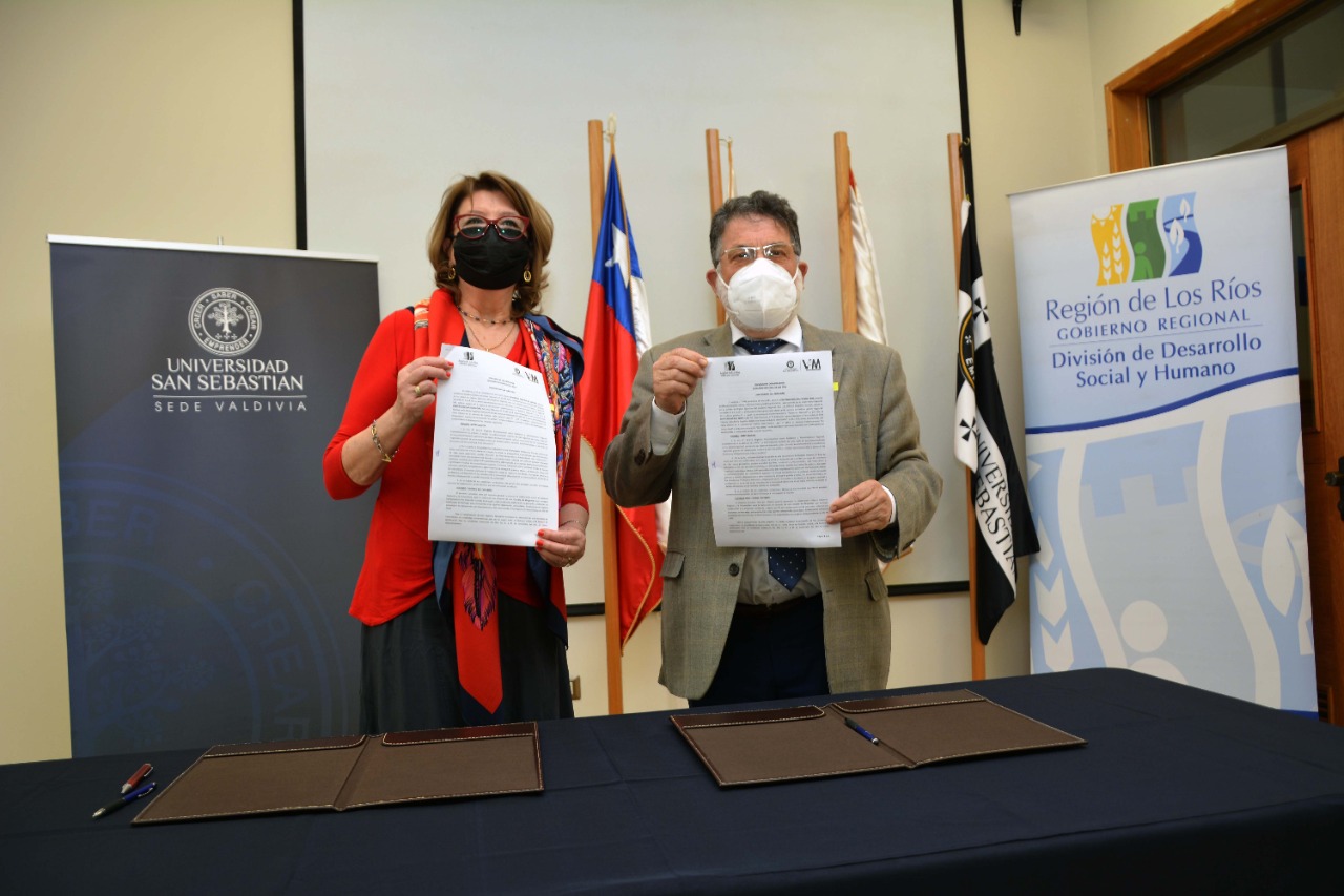 Luis Cuvertino, gobernador regional de Los Ríos, y María Angélica Hildebrandt, vicerrectora de la Universidad San Sebastián de la Sede Valdivia, firmaron un convenio de colaboración que permitirá encauzar distintas acciones en conjunto, iniciando esta semana con una Escuela de Dirigentes. La iniciativa entregará capacitaciones y herramientas a actores sociales de las doce comunas de la región, principalmente, para la elaboración de proyectos, planificación estratégica y fortalecimiento de habilidades, como el liderazgo.