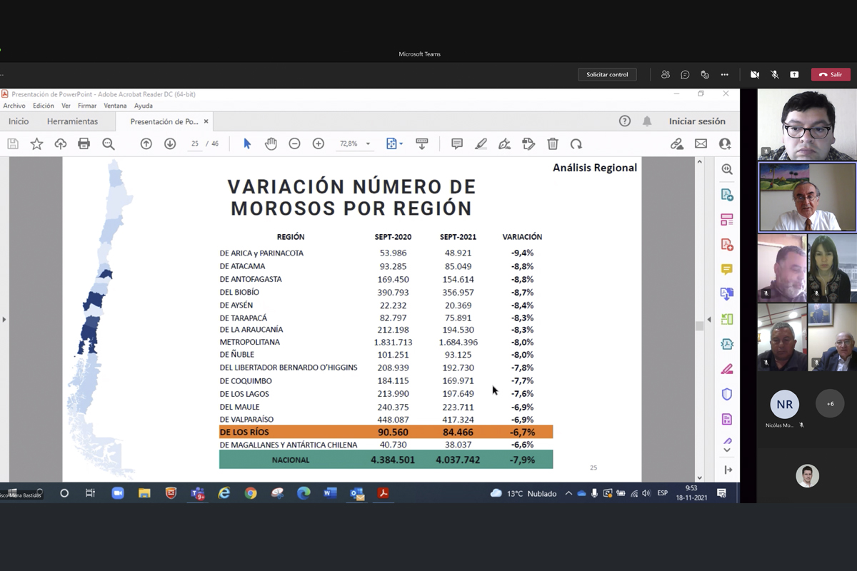 “Con este informe cumplimos un año con indicadores a la baja en el número de deudores morosos en Los Ríos, similares a lo que sucedía el año 2016. Con esto, en doce meses, han salido de la calidad de deudor moroso 6 mil 94 personas”, dijo Francisco Mena, director de la carrera de Ingeniería Comercial USS Valdivia.