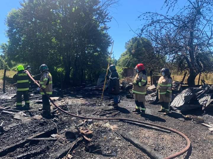 Tres viviendas resultaron completamente destruidas en un lamentable incendio registrado este domingo en la localidad rural de Chirre, de la comuna de Río Bueno.