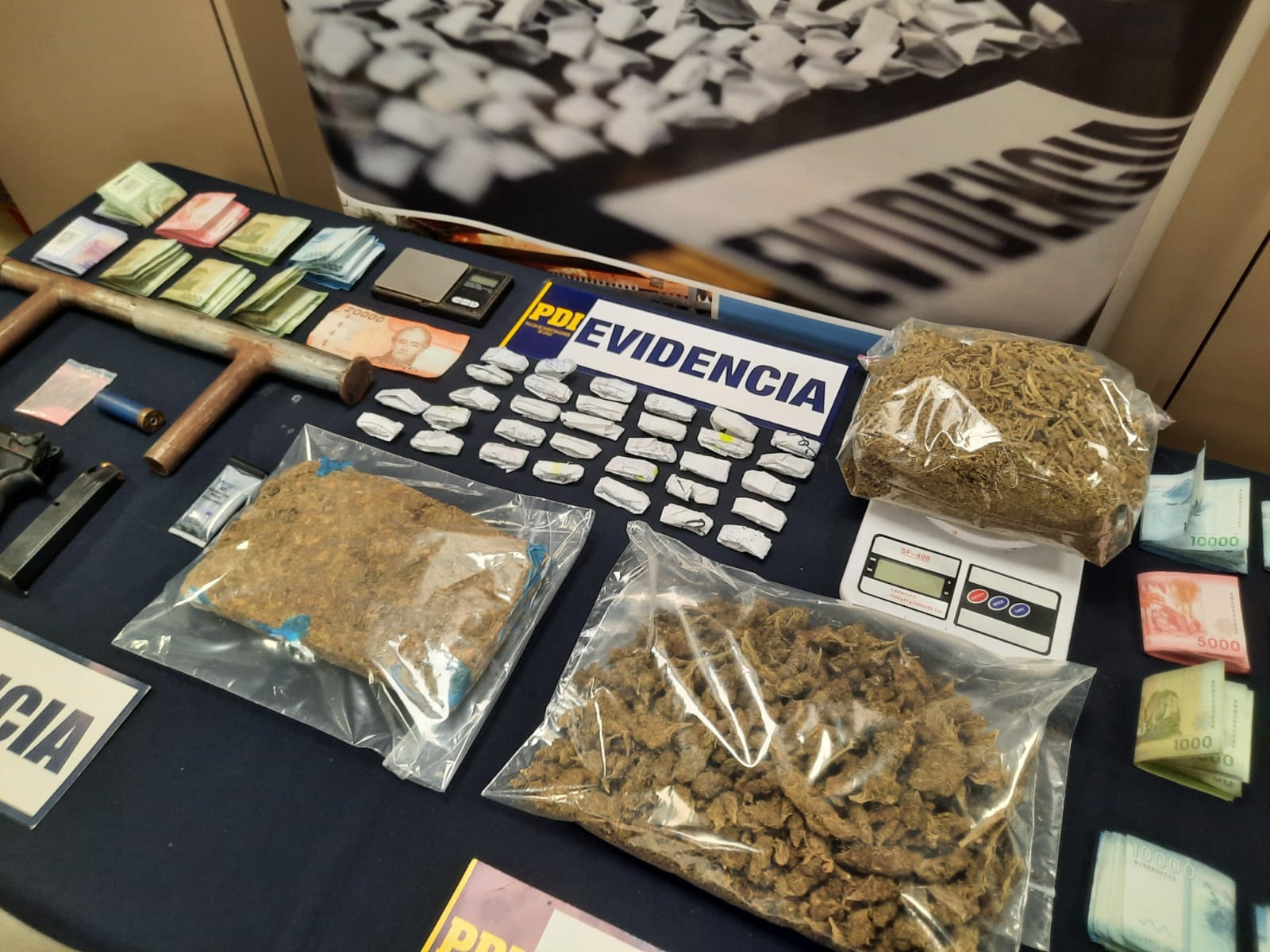 Detectives del Equipo Microtrafico Cero, dependiente de la Brigada Antinarcóticos y Contra el Crimen Organizado de Valdivia, en el marco de la Operación “Bazar”, detuvo la tarde del lunes, a una madre y su hijo por infracción a la Ley 20.000, incautando drogas, dinero, armas y municiones.