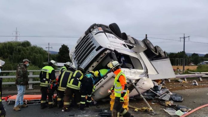 El accidente, que aún mantiene cortada la ruta de Norte a Sur, se produjo pasado las 06:00 AM, encontrándose en el interior del vehículo mayor sólo el conductor, quien presentó lesiones de diversa consideración y fue trasladado por personal del SAMU de La Unión hasta el Hospital Dr. Juan Morey.