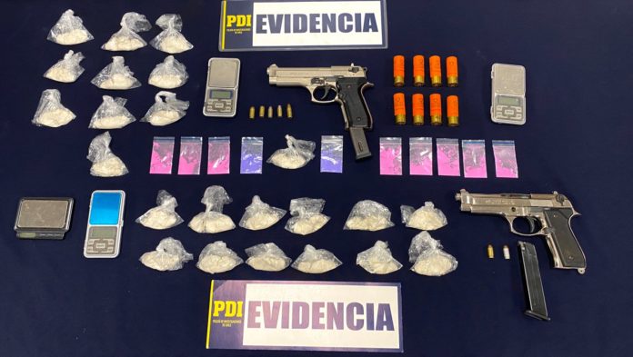 Al respecto, el Subprefecto Ginés Cofré, jefe de la Brigada Antinarcóticos y Contra el Crimen Organizado de la PDI Valdivia, detalló que, “a través de una investigación realizada en conjunto con la Fiscalía Local de Valdivia, se logró establecer un grupo delictual dedicado al tráfico ilícito de drogas, por lo cual se realiza una intervención a dos domicilios en la Población Norte Grande, logrando la incautación de cocaína base y ketamina, así mismo se incautaron dos armas a fogueos adaptadas para el disparo, diferentes tipos de munición y especies asociadas al delito investigado”.