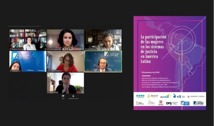 El informe fue elaborado durante 2021 por Núcleo DesDeh UACh junto con el apoyo del grupo de Mujeres por la Justicia y el programa Estado de Derecho para Latinoamérica de la Fundación Konrad Adenauer, DPLF y rescata las experiencias y opiniones de más de un centenar de juezas, magistradas, ex juezas, ex magistradas, académicas y expertas con un trabajo relevante en esta materia en 10 países de la región.