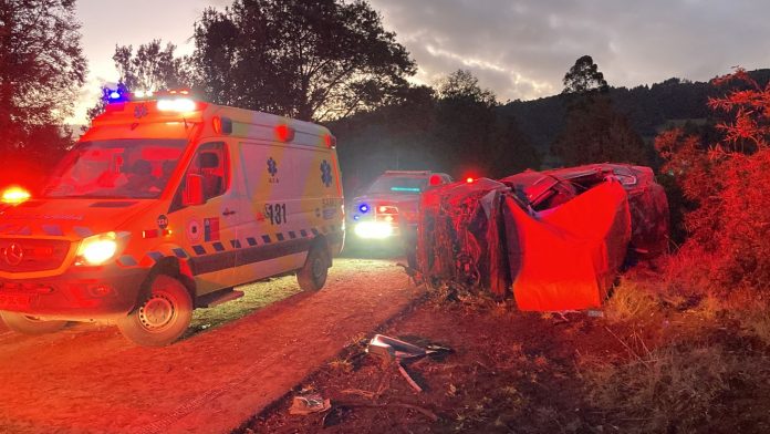 Los dos ocupantes de un automóvil resultaron fallecidos tras volcar a alta energia en la ruta que une San José de la Mariquina con la localidad costera de Mehuín, en la Región de Los Ríos.
