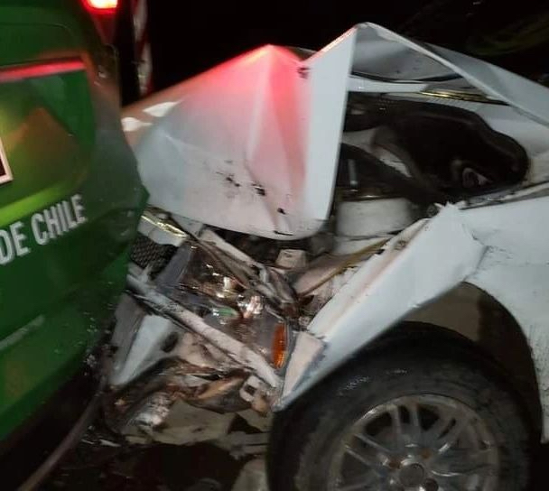 Personal policial verifica en la ruta la veracidad de la denuncia, y al tratar de detener el vehículo, este sigue su marcha, no obedeciendo el conductor las ordenes de detención de Carabineros, “por lo que impacta en un costado trasero al carro policial del retén Diumen, gracias a Dios, sin provocar ningún tipo de lesionados”, puntualiza el capitán Moraga.