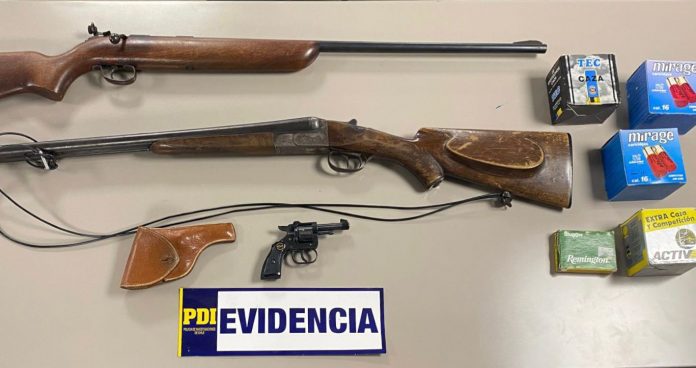 Un hombre de 59 años fue detenido por Detectives de la Brigada de Investigación Criminal (Bicrim) de la PDI Valdivia, en la comuna de Lanco, región de Los Ríos, por el delito flagrante de porte y tenencia de armas de fuego y munición.