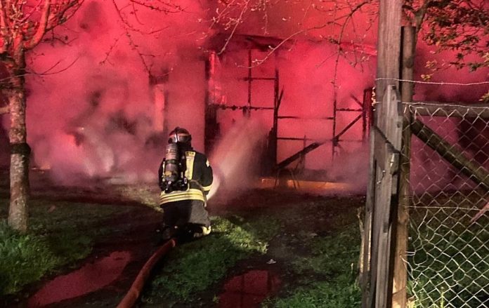 Un violento incendio destruyó la totalidad de una vivienda de material ligero ubicada en el sector urbano de Cancha Municipal, en la comuna de Río Bueno. La emergencia se desató pasadas las 3 horas de la madrugada de este miércoles y al lugar concurrieron tres compañías de Bomberos.
