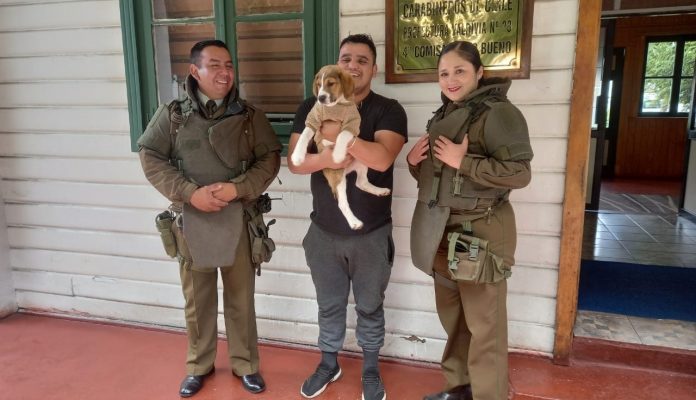 Personal de Carabineros perteneciente a la Cuarta Comisaría de Río Bueno, devolvió a su propietario un perro de raza beagle que fue encontrado en la calle y desorientado por comerciantes del centro de la comuna.