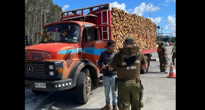 Por lo delitos de sustracción de madera, falsificación de instrumento público y conducir vehículo motorizado sin la licencia correspondiente, personal de Carabineros de la Sección Fuerza de Tarea detuvo a dos jóvenes que se desplazaban en un camión cargado con madera sin acreditar su procedencia.