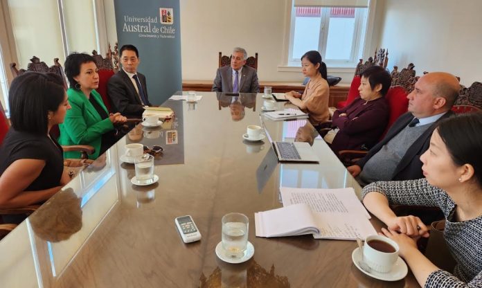 Una amena jornada se vivió esta jueves en dependencias del Salón Rojo de la Casa Central de la Universidad Austral de Chile hasta donde llegó el embajador de la República Popular China, Niu Qingbao, para realizar una visita protocolar al rector Hans Richter, con el objetivo de iniciar un primer acercamiento para estrechar lazos de colaboración y/o cooperación entre la embajada con la casa de estudios.