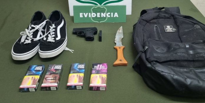 Además de algunas especies sustraídas, en el vehículo fueron halladas las vestimentas utilizadas para la comisión de los delitos, una pistola plástica de color negro, y un arma blanca tipo cuchillo.