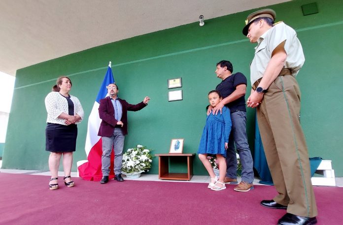 De esta manera, los padres, la pequeña hija, los hermanos y abuelos de la fallecida funcionaria, presentes en la ceremonia, descubrieron la placa conmemorativa junto al Delegado Provincial Alejandro Reyes y el Jefe de Zona de Carabineros Los Ríos, General Alex Muñoz Molina.
