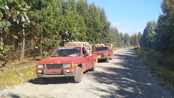 Carabineros detuvo durante la mañana de este sábado a cuatro hombres que fueron sorprendidos robando madera desde el interior de un predio perteneciente a Forestal Arauco que se ubica en el sector de Loncopán, comuna de Futrono.