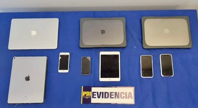 A raíz de una investigación por el robo de equipos electrónicos desde el interior de un vehículo en la ciudad de Valdivia, detectives de la Brigada Investigadora de Robos (Biro) lograron recuperar e incautar al interior de un local de reparaciones del centro de la ciudad, diversos equipos electrónicos de marca Apple, como iPhone, Ipad y MacBook, avaluados en más de 6 millones de pesos.
