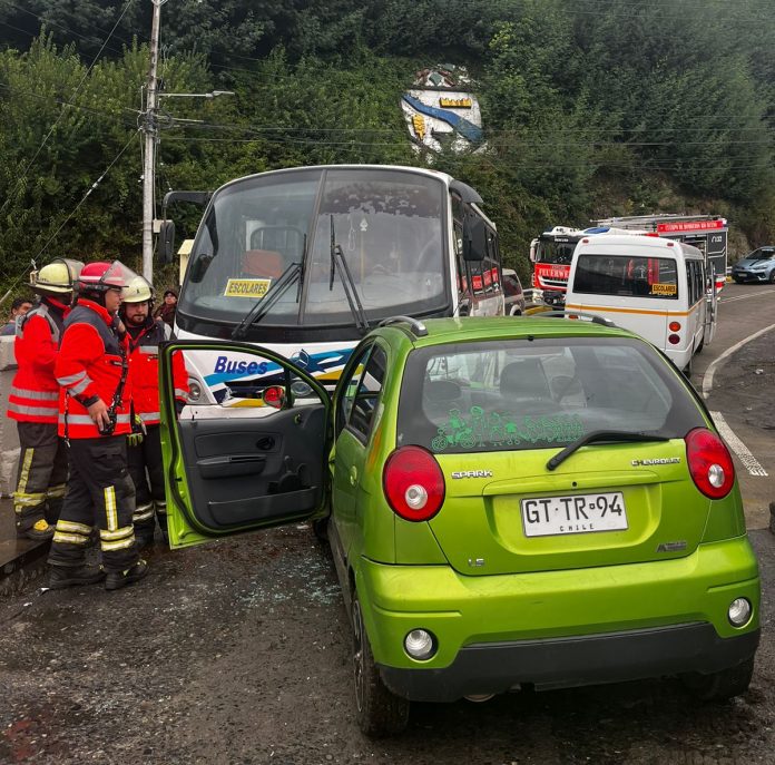De acuerdo a lo informado por el capitán de la Primera Compañía de Rescate de Bomberos de Río Bueno, Jonathan Catalán, en el lugar colisionaron un minibús que transportaba escolares con un vehículo menor.